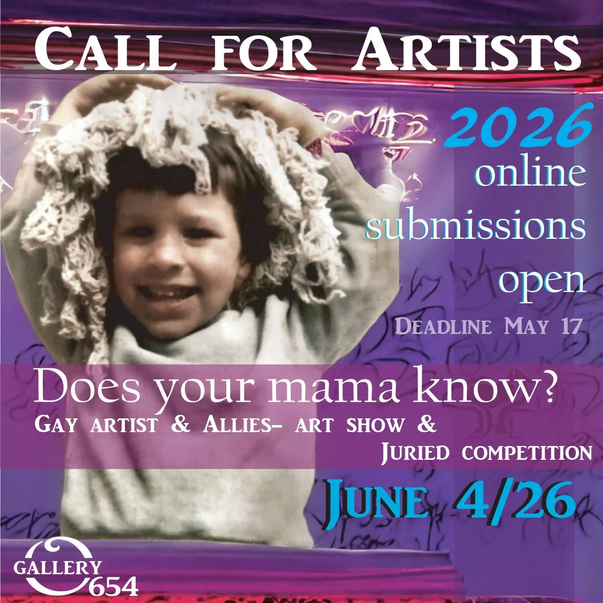 Does Your Mama Know is a juried exhibition and competition celebrating LGBTQ+ artists and allies during Pride Month. Presented by Gallery 654, the show explores themes of identity, visibility, chosen family, love, and self-expression through diverse artistic voices and mediums. Bold, personal, and unapologetic, this exhibition invites viewers to reflect on what it means to be seen, accepted, and proud—both within our communities and beyond them.